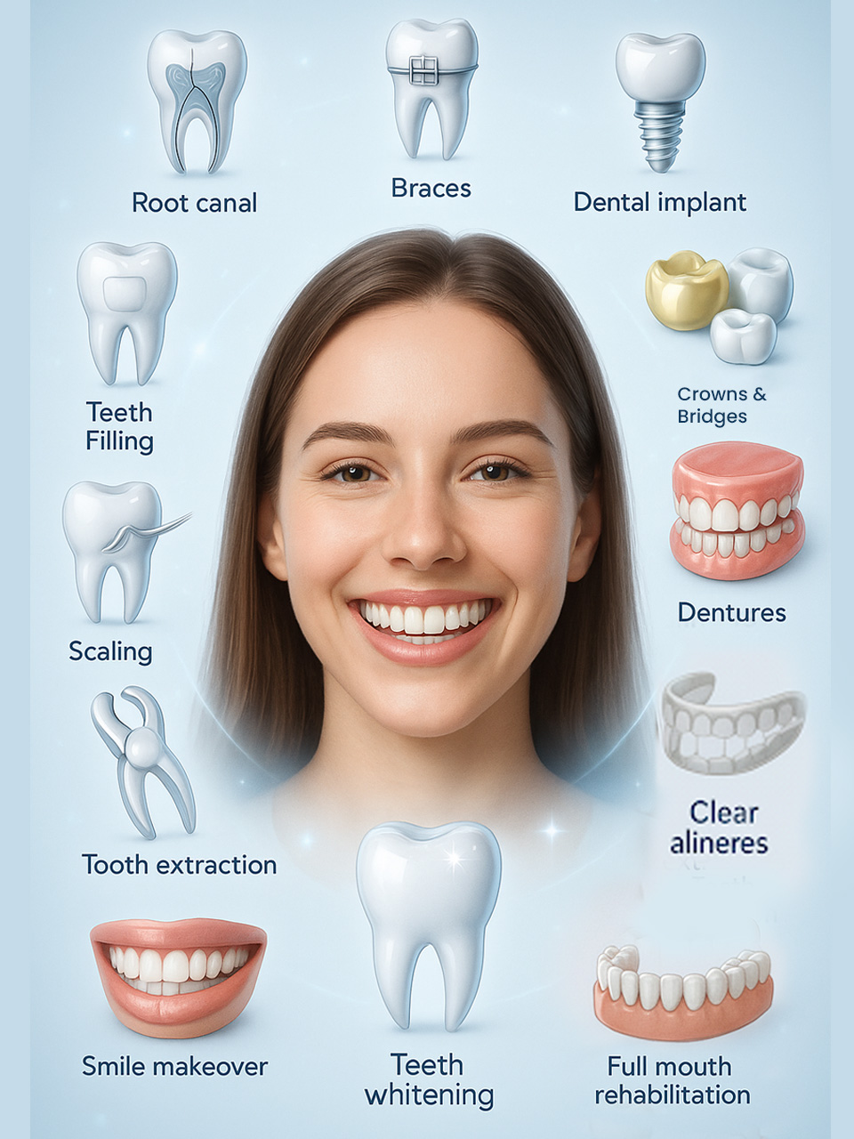 Premium brands (Straumann, Nobel Biocare, Osstem) ensure durability and long-term success.